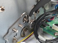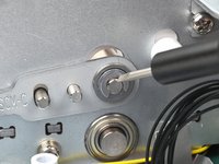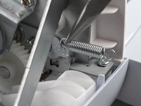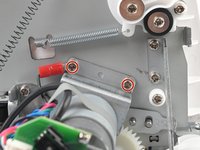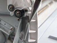 Use a pair of angled tweezers to remove the plastic washer from the right end of the roller bar.