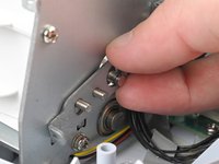 Use a pair of tweezers to remove the plastic washer from the left end of the roller bar.