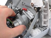 If the white grease on the pin came off during disassembly, apply a small amount of new grease to the pin before putting the motor assembly back in place.