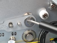 Use a Phillips screwdriver to remove the four 41 mm‑long screws securing the top cover to the base. There's one screw under each foot.