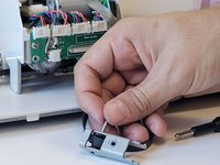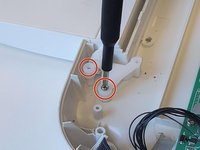 Using a Phillips #1 screwdriver, remove one 10 mm screw from both sides of the machine. This will release wires that are screwed into the sides of device.