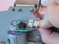 Use a Phillips #1 screwdriver to remove the four 5 mm screws that attach the motor on the left side of the machine.