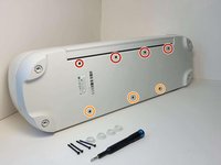 Remove the seven screws (Four 8.5 mm screws, and three 12.5 mm screws) on the bottom of the device, this will allow you to remove the cover later on.