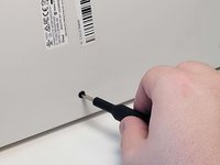 Using your hands or an opening tool, remove the four foot pads covering four screws.