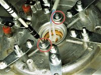 Remove the 2 red wires from the terminal post by unscrewing the 10mm screw using a Phillips #2 screwdriver and label terminal post as red.