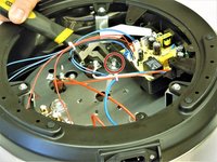 Remove both 19mm screws from the cutout switch housing using a Phillips #2 screwdriver, freeing the heating element from the device.