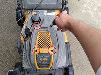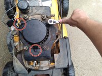 Tighten the hood back onto the lawnmower with a Phillips #0 screwdriver and the four screws you had removed previously.