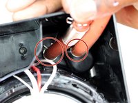 Use tweezers to remove the two rubber feet marked within the provided pictures.