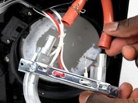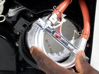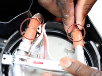 Squeeze the two hose clamps together as you slide the clamps away from the heating element.