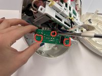 • Remove two 10 mm screws to free the button circuit board from the bracket using a Phillips #2 screwdriver.