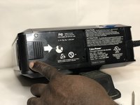 Remove the battery plate cover at the bottom of the UPS using a Phillips #1 screwdriver.