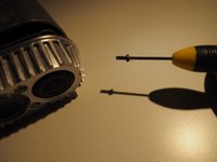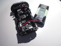 Remove the 2 screws holding the battery into the case. One is tight so you'll need to rotate the camera without pulling the wires too much