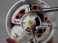 Remove the two 7mm screws holding the motor using a #1 Phillips screwdriver.