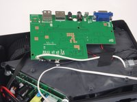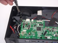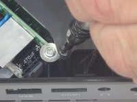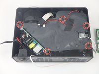 Remove the five 7mm PH2 phillips head screws on the black plate and lift the plate out.