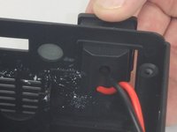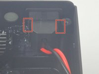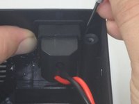 Using the small plastic splunger, press in on the two latches on the sides of the power supply switch, then push it out of the case.