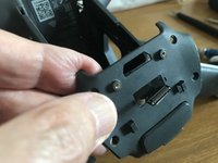 Remove a screw on either side of the GPS unit. These have very fine Phillips heads, smaller than 000. One of the heads may be covered with a black coating which should be scraped off