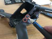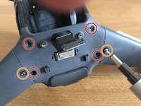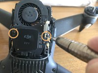 Facing the back of the drone, remove two screws retaining te optical sensor unit.