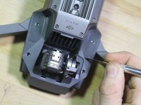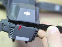 First, turn the drone over, so it is right side up, and facing away from you. Now, use a metal spudger to pry open the rear end of the case. Be careful not to pull too far up, as there is still a cable which is connecting the two pieces.