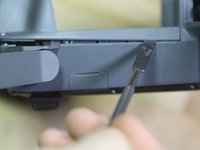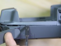 Insert your metal spudger in between the top and bottom case on both the left and right sides of the drone, as shown in the photo. Pry up gently until it is free.