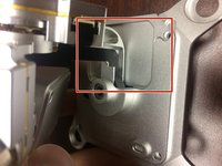 Here you see the smaller plate outlined in red. These aren't that tricky to reassemble. You just have to keep the button in place.
