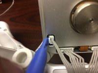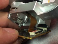Next you need to peel the ribbon cable off of the yaw arm. It is sticky, but not too bad. I would recommend using a hair dryer to warm it if possible to soften the adhesive.