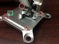 Remove the four Philips screws on the bottom plates. There are two plates here with two screws each. Be careful you don't lose the button on the bottom of the gimbal.