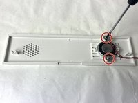 Use a Phillips #0 screwdriver to remove the two 10.0 mm screws that secure the speaker.
