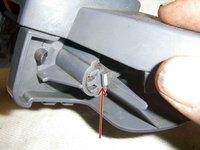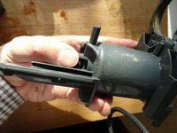 You are right. Someone put the picture and no notes with it. Presumably to recognize the position. The rubber part (triangle shaped?) is a a stop for the shovel. It is clamped between the two halves of the housing.