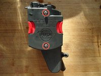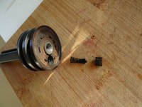 Der Kolben muss wie gezeigt eingeschoben werden, die Zähne müssen in die Zahnstange passen. Der Kolben schließt dann oben bündig ab.