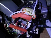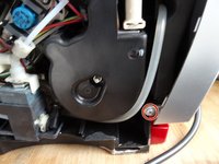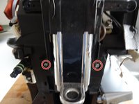 Der Träger des oberen Kolbens ist auf der linken Seite mit zwei Schrauben befestigt. Je nach Modell müssen diese Schrauben freigelegt werden.