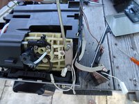 Die Trägerplatte des oberen Kolbens ist jetzt frei. Sie sitzt allerding sehr eng und es ist knifflig sie herauszuholen. Sei geduldig und arbeite behutsam. Achte darauf, dass das Flachbandkabel zum Bedienpanel nicht beschädigt wird.