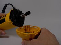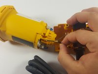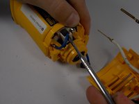 Using two fingers, pull the black and white power wires from the motor to completely disconnect the back half of the device.