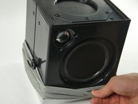 Once all screws have been removed, gently pull up on the black panel to remove it from the top of the speaker.