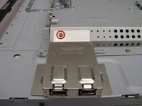Remove the four 4 mm Phillips #2 screws that secure the monitor mount release mechanism to the panel.