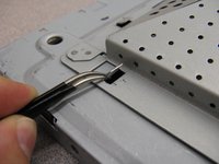 Use the tweezers to lift up the seven security tabs that secure the back panel to the rest of the monitor.