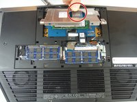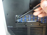Remove (2) 3 mm Phillips head screws, using a Phillips # 0 screwdriver, that connect the solid-state drive assembly to the computer base.