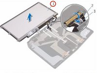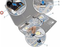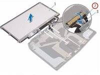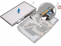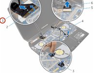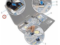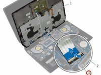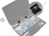 Disconnect the logo-board cable from the system board and remove it from the routing guides on the display hinges.