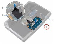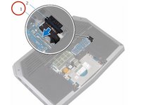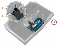 Lift the connector latch and disconnect the power-button board cable from the system board.