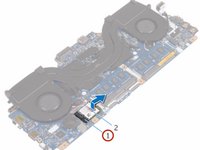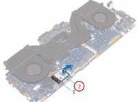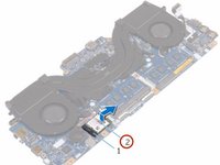 Using the pull tab, disconnect the solid-state drive cable from the system board.