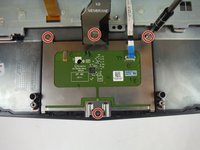 Remove (4) 3 mm Phillips head screws securing the touch pad to the palm rest assembly using a Phillips # 0 screwdriver.