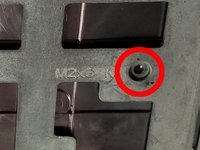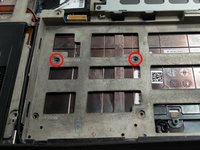 Once the battery is removed, take out the two screws circled. These screws are labeled "M2x3 K" by engravings in the frame located next to their corresponding holes.
