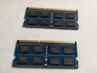 Starting with the bottom stick of RAM, align the pin and insert the stick at the same angle you removed the old one. Once it is gently pushed in all the way, push the stick down as shown in the third picture until it locks under the retaining springs.