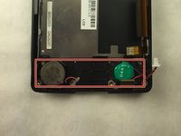 Remove the two 9.6 mm screws by the speaker and green battery with a JIS #0 screwdriver.