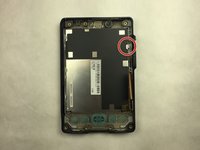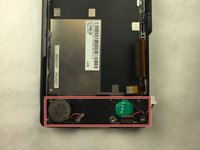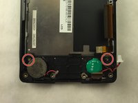 Remove the two 9.6 mm screws by the speaker and green battery with a JIS #0 screwdriver.