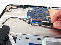 Lift the black clasp and gently pull on blue ribbon until it completely disconnects from the motherboard.