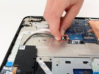 Lift black clasp and gently pull on the back of the wire until it completely disconnects from the motherboard.