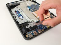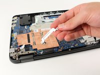 Lift the black clasp and use the spudger tool to remove the ribbon so that it completely disconnects from the motherboard.