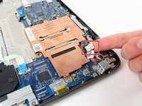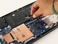 Unplug the battery from the motherboard by gently pulling the black cable header from the motherboard towards the battery.