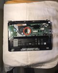 Locate the two cables that connect the top panel to the device. One black, and one white.