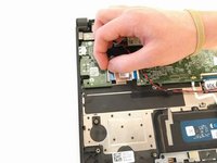 Using the pointed end of a #2 spudger, remove the connection between the battery and motherboard by slightly pulling on the wires while pushing the tiny hole down using the spudger.